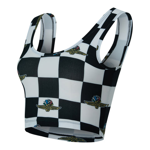 Ladies Wing Wheel Flag Checkered Mosaic Crop Top